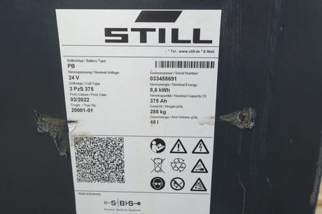 Staplerbatterie 24V 2PzB200 L-TROG
