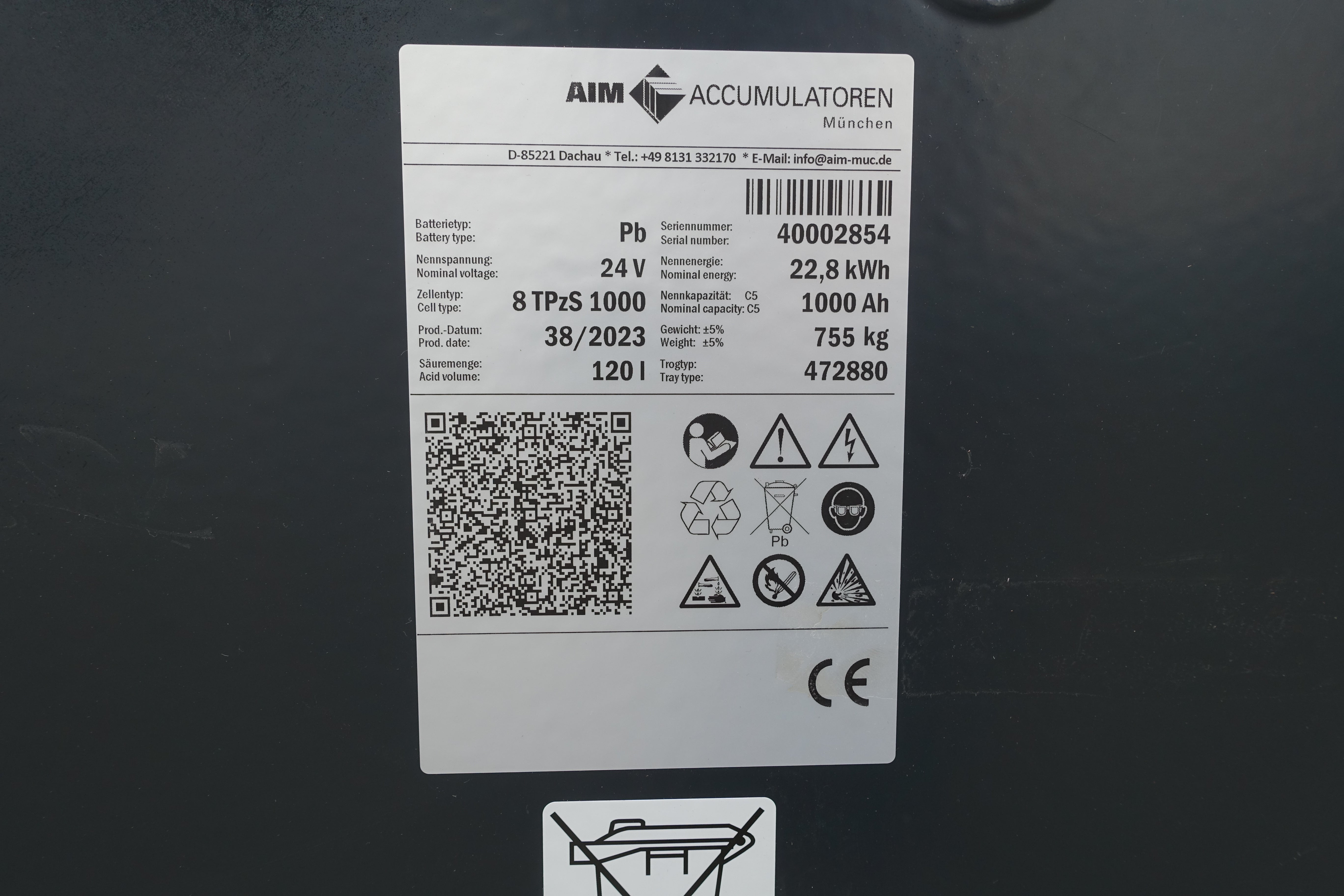 The type plate of a forklift battery also contains further information such as: